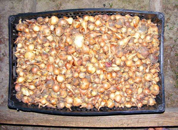 Par conséquent, le choix des plants d'oignons doit être effectué en fonction du moment de la plantation et de son objectif. La taille la plus optimale des bulbes pour leur croissance normale ultérieure est de 1 à 2 cm.