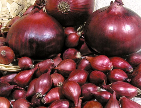 - Baron Rouge. Excellente variété précoce d'oignons rouges / violets. L'ampoule est ronde et a une masse de 25-40 à 130-150 g. Ils sont bien conservés. Le goût des bulbes est agréable et semi-aigre. Il est apprécié pour son rendement stable et ses excellentes propriétés de maturation. Nécessite un arrosage, un desserrage et un désherbage réguliers. Propagation par semis, semis et graines. En raison de son excellent goût, il est souvent inclus dans les salades ou consommé frais.