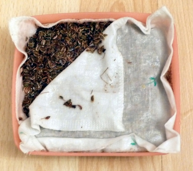 Placez les graines dans des sacs en lin pour plus de commodité. Plongez-les dans la solution pendant 24 heures maximum. Une fois le temps écoulé, sortez la graine, rincez-la et placez-la au réfrigérateur pendant 3-4 jours. Séchez les graines avant de planter.