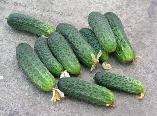 Variété à maturation très précoce (36–42 jours). Diffère dans la durée de la fructification - du début de l'été à la deuxième décade de septembre. Les fruits de teinte vert foncé ont presque la même taille, atteignant 8 à 10 cm et pesant de 70 à 100 g. Ils ont un goût prononcé et sont souvent utilisés pour le décapage. Rendement moyen à partir de 1 m². m est de 20-25 kg.