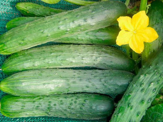 Variété indéterminée à maturation précoce de type génératif. Les fruits sont grumeleux, réguliers, de 10 à 12 cm de long, pesant de 70 à 90 g. Ils sont recouverts d'une peau émeraude foncée avec des rayures blanchâtres et des "épines". Les concombres sont croustillants, sucrés et ont un goût riche. Convient pour faire des salades. Productivité à partir de 1 m². m n'est que de 3 kg.