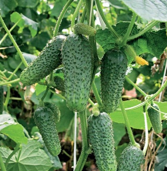 Les premières variétés de concombres - la salade - sont généralement cultivées en serre ou sous film. Leurs caractéristiques sont un goût neutre, une peau fine et une forme allongée. Parmi les meilleurs types de légumes bien adaptés à la culture en serre et à la préparation de salades nutritives à l'avenir figurent des variétés telles que Goosebump F1, Boy-with-doigt, Benefis F1, Alekseich F1, Emelya F1. Par exemple, Goosebump F1 est un type de culture légumière à maturation précoce, dont la récolte peut être récoltée après 42 à 45 jours, est autofertile. Son buisson est de taille moyenne, de gros fruits tubéreux avec de petites épines, pouvant atteindre une longueur de 12 cm, il a de bonnes caractéristiques gustatives et est totalement dépourvu d'amertume. Convient non seulement à la culture en serre, mais aussi en pleine terre.