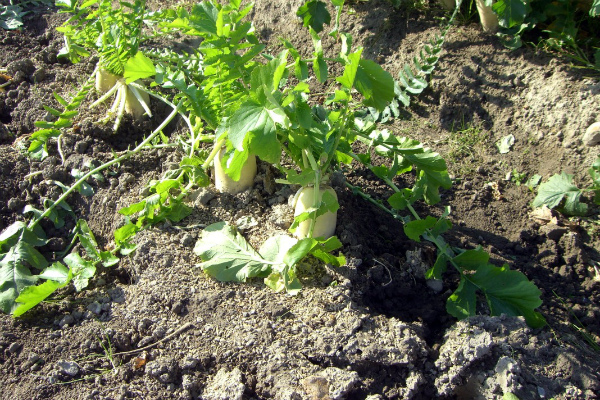Le radis d'outre-mer préfère les sols limoneux légers, de préférence sableux avec peu de tourbe. La technologie de plantation d'une culture est assez simple: sur une zone préalablement creusée et fertilisée, des sillons sont faits avec une profondeur de 2 à 4 cm, 2 graines y sont plantées à une distance de 20 à 30 cm. être d'au moins 50 cm, car les plantes-racines peuvent avoir une taille très impressionnante.