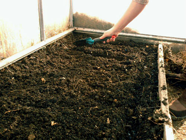 Le radis préfère un sol bien drainé avec une acidité neutre. Si la terre de votre serre ne répond pas à ces caractéristiques, elle doit être ajustée. Pour améliorer les propriétés de drainage, vous pouvez ajouter de la tourbe, de la cendre de bois, un peu de sable de rivière, pour réduire l'acidité - ajouter de la chaux éteinte ou des copeaux de dolomie. Si des légumes sont régulièrement plantés en serre, le sol ne se repose pas et s'épuise rapidement.Avant de planter des radis dans un tel sol, il est nécessaire d'ajouter des engrais minéraux complexes contenant du phosphore et du potassium.