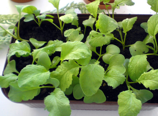 S'il y a une pièce non chauffée à la maison où vous pouvez fournir une température de l'air de 18 à 20 degrés, alors c'est là que vous pourrez faire pousser des radis sur le rebord de la fenêtre. Les heures de clarté idéales devraient être de 10 à 12 heures. Un rebord de fenêtre, près duquel il n'y a pas de radiateurs, est un endroit merveilleux pour cette culture. Si de telles conditions peuvent être créées, le radis à la maison ravira les propriétaires même toute l'année. Vous devez le semer toutes les 2 semaines par petits lots, puis la récolte mûrira constamment et votre famille ne manquera pas d'un complexe vitamino-minéral avec une excellente assimilation.