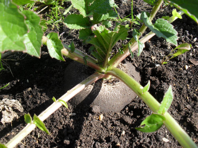 La première alimentation est effectuée après l'apparition de la 4ème feuille et la seconde (si nécessaire) - un mois après. Si les propriétaires pensent qu'ils ont encore besoin d'une alimentation biologique, vous pouvez utiliser de la purée d'herbes (infusion fermentée d'herbes), du compost ou de l'humus, mais les experts avertissent que l'abondance d'engrais organiques raccourcit la durée de conservation du radis noir et réduit également sa consommation. qualités. Habituellement, les jardiniers pensent qu'il vaut mieux sous-alimenter le radis que suralimenter, le manque de nutriments affectera la qualité des légumes verts et le taux de croissance des racines, donc si vous le remarquez, vous pouvez ajouter une alimentation supplémentaire à l'habituel arrosage.