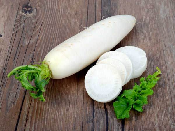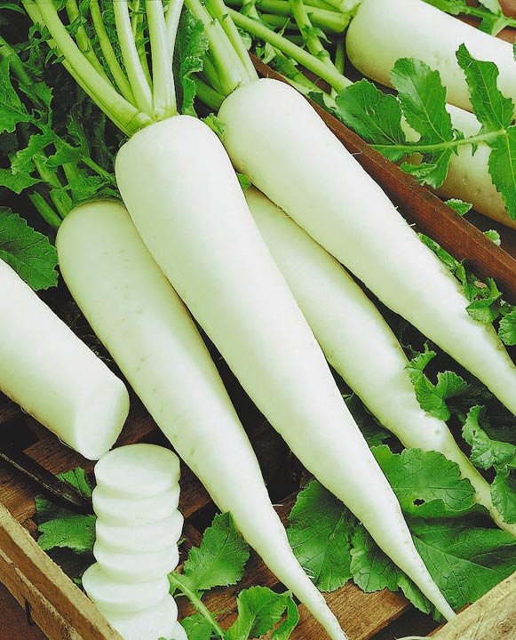 - Le Daikon "Japanese Long" est un hybride à maturation tardive (80-90 jours) à haut rendement, peu enclin à tirer des flèches. Les plantes-racines sont longues (40-60 cm), grandes (jusqu'à 3 kg), blanches, allongées, légèrement pointues vers le bas. La pulpe est dense, au goût légèrement piquant, a des propriétés curatives élevées. Les plantes-racines conservent leur valeur marchande, leur goût et leur jutosité pendant longtemps.