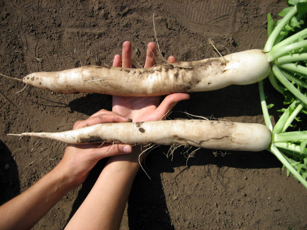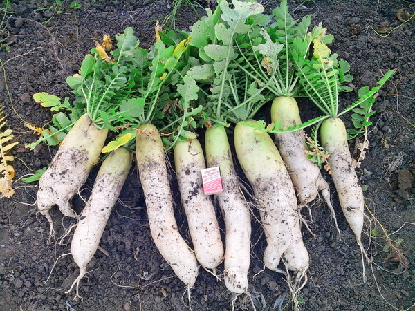 Les légumes-racines de Tokinashi ont des propriétés médicinales élevées et un excellent goût doux. Il sera juste de dire que ce daikon, dont la description extérieure n'est pas aussi attrayante que son goût (les racines ne diffèrent pas par une forme uniforme), pousse mieux dans un loam sableux léger ou un sol limoneux. Prendre soin de lui n'est pas du tout difficile. Comme sa saison de croissance est plutôt courte, il n'est pas nécessaire de nourrir les plantes.Arroser périodiquement, éliminer les mauvaises herbes du jardin - c'est tout ce dont une culture a besoin. Et si vous prenez bien soin de la culture du Tokinashi, le rendement peut être assez impressionnant.