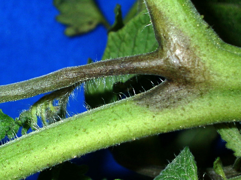- les tiges sont également affectées de taches brunes de forme allongée, mais sans plaque. Au fil du temps, les taches peuvent fusionner en une seule ;