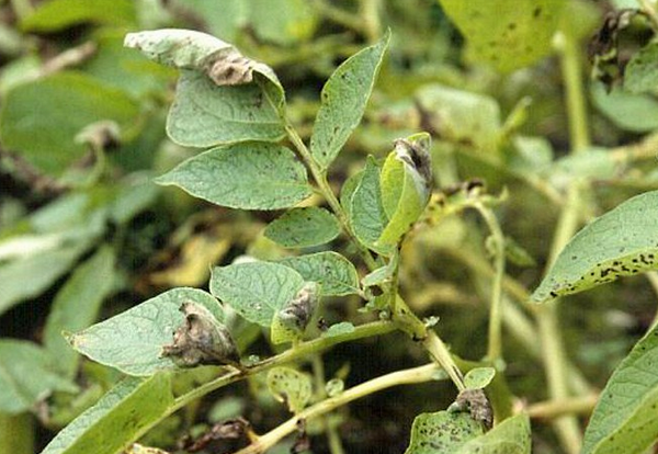 Les pommes de terre sont les premières solanacées à être affectées par le mildiou. Par conséquent, les jardiniers expérimentés contrôlent toujours cette culture afin de réduire les risques de maladies d'autres plantes. Pour ce faire, il est nécessaire non seulement de procéder à un examen approfondi, mais également d'éliminer toutes les feuilles suspectes du dessus des pommes de terre, car elles peuvent indiquer le début du processus d'infection par le champignon.