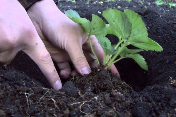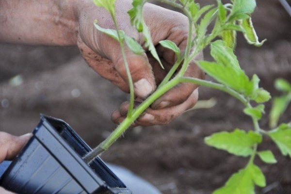 À l'aide d'une spatule tranchante, en faisant un retrait sur le côté d'environ six centimètres, creusez un trou dont la profondeur sera de 40 cm.Après cela, vous pouvez y déposer des plants. Son système racinaire doit être préalablement taillé et nettoyé afin qu'il puisse s'insérer sans problème dans le trou préparé. Quant aux feuilles, elles doivent être coupées du bas, tandis que la partie supérieure est laissée. Lorsque tous les semis sont plantés de cette manière, vous devez immédiatement arroser toute la zone avec un bon jet d'eau.