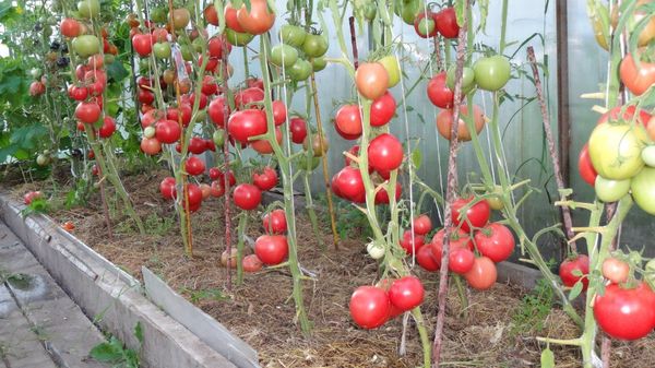 Les tomates de ce type peuvent être cultivées aussi bien en serre qu'en pleine terre. Par conséquent, la variété est considérée comme universelle. Le buisson forme les premiers fruits très gros. Ensuite, ils commencent à devenir plus petits. Le poids moyen d'une tomate varie de 200 à 600 g.