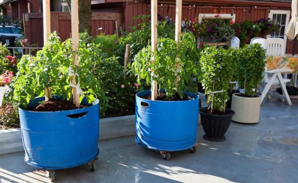 Une condition indispensable pour faire pousser un arbre à tomates est le bon endroit. Une plante forme des pousses de plusieurs mètres de long, qui nécessitent beaucoup d'espace. La zone de placement des fûts doit être bien éclairée, car la culture a besoin de beaucoup de soleil. Les fûts installés sont remplis d'urgas (couche inférieure) et de compost EM (couche supérieure).