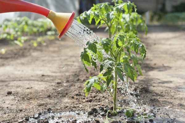 Les tomates nécessitent un arrosage périodique. Ceci est mieux fait lorsque l'humidité de l'arrosage précédent est déjà tarie. Cela ne permettra pas aux racines de la plante de pourrir à cause de l'excès d'humidité ou de se dessécher s'il n'y a plus d'eau.