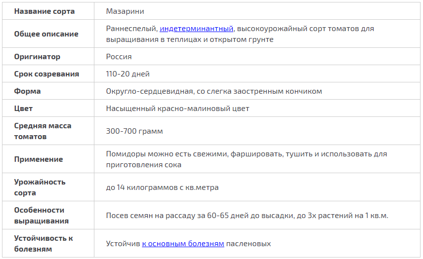 - 3 Description et caractéristiques de la tomate Mazarin