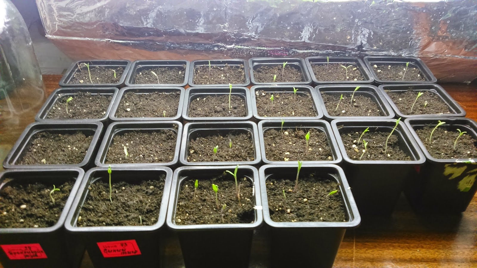 Emballez le récipient avec les germes tamisés dans un sac en plastique. Si les boîtes à graines sont grandes, couvrez-les de verre. Ceci est fait pour garder la masse de sol constamment humide. Placer dans un endroit chaud avec une température de 25-27 degrés. Les tomates seront dans cet état jusqu'aux premières pousses. Après la plante, vous devez la transférer à la lumière.