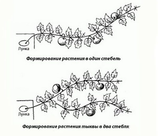 L'augmentation de la fructification et de la masse de citrouilles dépend directement de la nutrition de la plante en substances utiles. La préférence est donnée à la molène, au compost, au fumier pourri. Fertiliser le sol systématiquement - 1 à 2 fois par mois.