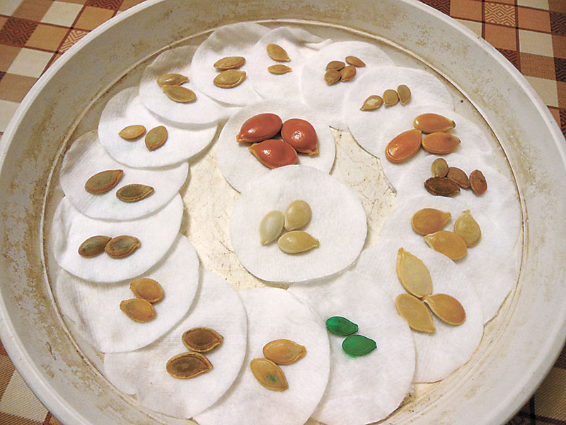 Pour augmenter la résistance au froid, certains jardiniers durcissent les graines qui ont émergé. Pour ce faire, avant de planter, vous devez envelopper les graines de citrouille dans un chiffon humide et les placer dans la section légumes du réfrigérateur pendant 3 à 5 jours.