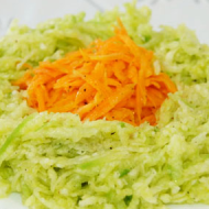- Broyer un légume-racine, une carotte et une pomme sur une râpe moyenne. Placer dans un bol et ajouter le zeste d'orange ou de citron. Saupoudrer d'herbes. Assaisonner de sel et d'huile de tournesol.