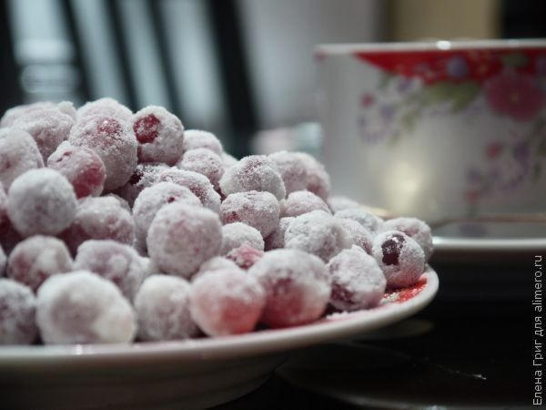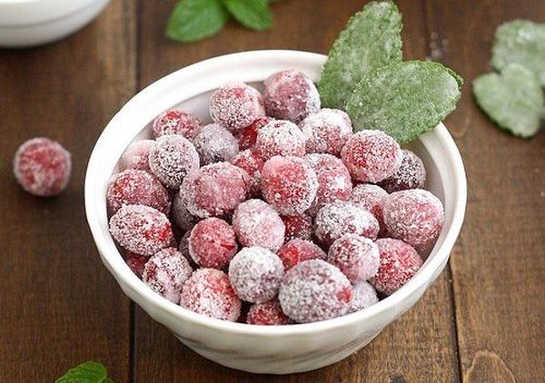 La production de masse de baies de sucre n'est pas courante. Vous pouvez acheter des canneberges de vos mains, mais il est préférable de vous faire un régal vous-même. Ingrédients requis : quantité égale de canneberges et de sucre en poudre, 1 œuf.