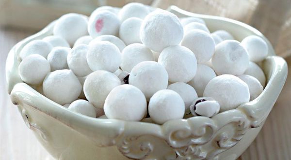 - La poudre est versée sur un large plat plat, puis les baies sont mises en petite quantité et doucement roulées.