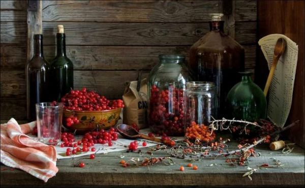 Composants : viorne et vodka en quantités égales (1 litre pour 1 litre), 400 ml d'eau, 300 g de sucre.