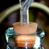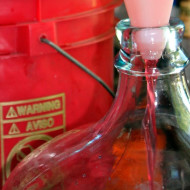- Le moût est versé dans une bouteille, un gant médical est mis sur le cou.