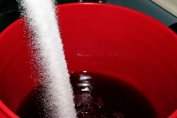 - Un autre 0,5 kg de sucre est ajouté, la matière première est versée dans un récipient vide pour une fermentation ultérieure. Le récipient est rempli à .