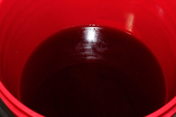 - À la fin, le moût est décanté à travers un tube, les baies sont jetées.