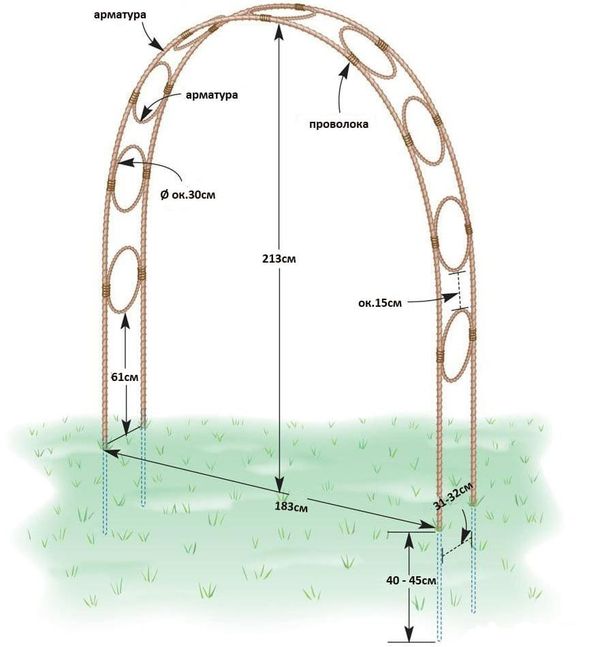 Si la flexion du renfort est impossible, des tiges métalliques peuvent simplement être enfoncées verticalement dans le sol, en les reliant au sommet avec des cavaliers droits. L'arc ne sortira pas incurvé, mais en forme de U, mais la conception s'avérera toujours fiable et pratique.