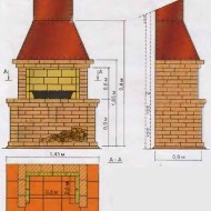 La structure est en briques. Il s'agit d'un foyer d'été fiable et attrayant pour la friture. Si vous décidez de construire un barbecue de vos propres mains, cela n'a aucun sens de choisir des projets complexes, de construire tout un complexe de poêles. C'est difficile dans le plan de travail, et il faudra beaucoup d'argent. Vous devez commencer simplement. Lorsque vous maîtrisez parfaitement la maçonnerie, vous pouvez penser à quelque chose de grand.