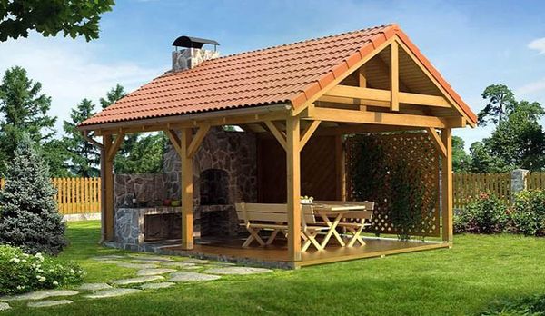 Les architectes offrent de nombreuses options pour les chalets d'été. Leur forme peut être ronde ou hexagonale, comme un nid d'abeille, la structure est rendue ouverte ou fermée, avec des fenêtres amovibles ou coulissantes. Souvent, le gazebo est combiné avec une cuisine d'été, après avoir construit un poêle fixe ici ou installé un barbecue mobile à l'intérieur.