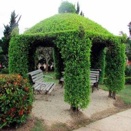 - Arqué. Ces types de gazebos sont très courants. Ils ne sont pas difficiles à réaliser, et ils servent parfaitement de cadre. Cette conception crée une quantité suffisante d'ombre pour que le propriétaire du site et ses invités puissent faire une pause sous le soleil brûlant. De plus, les vignes sont constamment exposées au soleil et reçoivent la quantité d'énergie solaire nécessaire. Seul bémol : si vous voulez vous procurer une vraie arche, il vous faudra acheter une structure cintrée, ce qui revient assez cher. Mais vous pouvez essayer de faire une arche de vos propres mains.