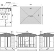Les petits gazebos sont presque entièrement faits de briques. Dans les grandes structures, les murs peuvent être jusqu'à moitié ou même plus vitrés. Le vitrage peut supposer la présence de cadres et de structures sans cadre installés sur un profilé métallique.En tant que matériau, vous pouvez utiliser du verre ordinaire ou au silicate.