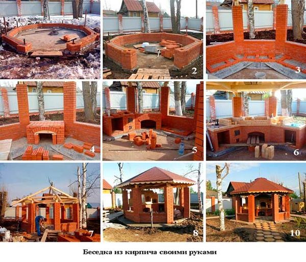 Construire un belvédère en brique ne fonctionnera pas rapidement. Les coûts des matériaux seront plusieurs fois plus élevés, mais la conception ne nécessite pas de traitement spécial supplémentaire et présente un certain nombre d'autres avantages :