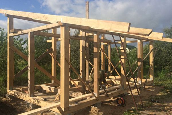 - Nous utilisons des supports verticaux comme supports d'un système de chevrons à une seule pente. La charpente supérieure du futur bâtiment remplira la fonction de support inférieur de la structure du toit.