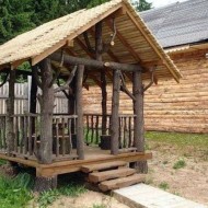 - Construction à partir de troncs d'arbres. Convient uniquement pour les gazebos ouverts. Vous devrez acheter uniquement le matériau pour le toit.