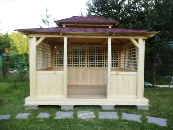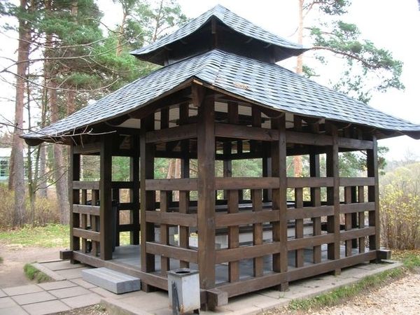 La forme du gazebo peut être ronde ou carrée. La principale chose qui donne au bâtiment un style japonais est un toit à plusieurs niveaux (pagode). Selon la philosophie orientale, un tel toit instille la pacification, donnant lieu à un sentiment d'harmonie avec le monde environnant.