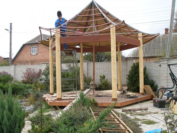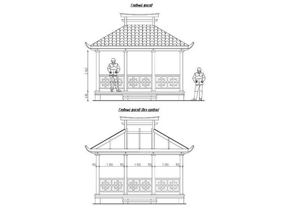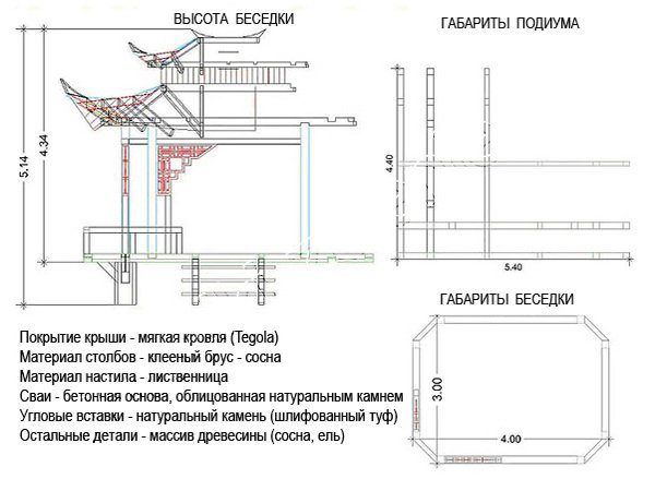 Cependant, si vous le souhaitez et avec persévérance, vous pouvez construire un belvédère dans le style japonais avec des outils de menuiserie et de menuiserie. Vous devez avoir les compétences appropriées.