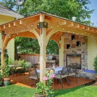 - gazebos extérieurs, qui sont presque une cuisine à part entière en raison de la présence de cheminées intégrées, barbecue.