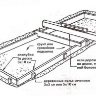 - Après avoir installé les planches longitudinales, elles sont fixées avec des entretoises faites maison au-dessus du niveau des chemins de 2-3 cm.
