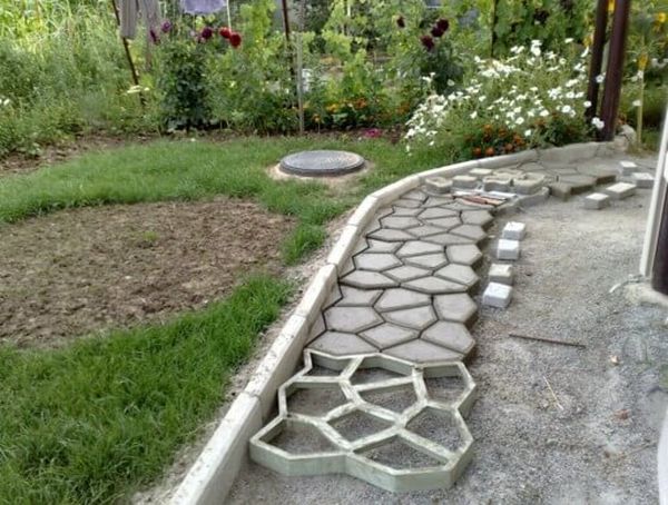 - En train de couler du béton, vous pouvez incarner des idées originales pour la conception d'allées de jardin.