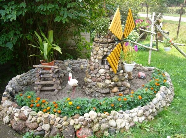 Vous pouvez faire un moulin pour un jardin de vos propres mains en bois ou en pierre, dans certains cas, il est complété par une cascade. Une éolienne standard se présente sous la forme d'un trapèze isocèle avec des pales fixées sur un côté de la structure. Pour plus de crédibilité, ils peuvent être alternés.