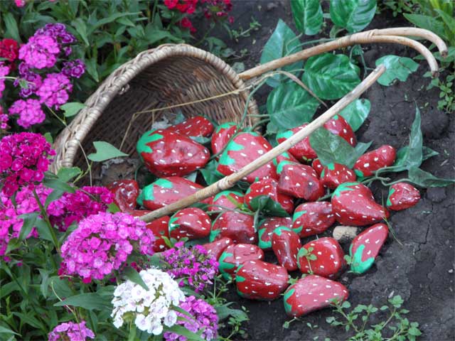 La conception de l'image peut être choisie à votre discrétion. Ceux-ci peuvent être des ornements et des motifs colorés ou monochromes, des dessins sur un sujet spécifique, des lettres, des chiffres et même des mots. Les pierres représentant des compositions florales, divers insectes, animaux, oiseaux et oiseaux aquatiques sont très populaires parmi les résidents estivaux.