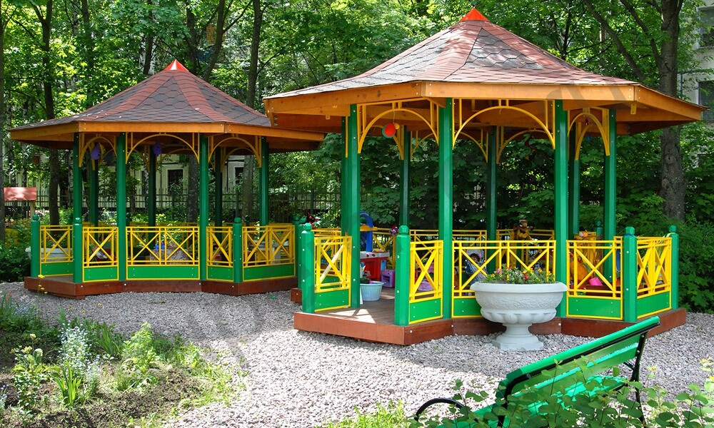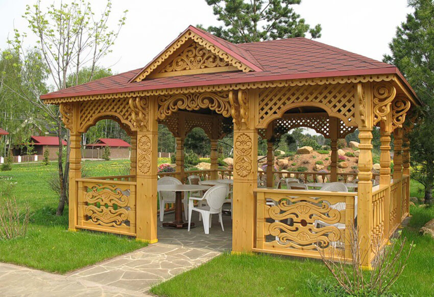 Le gazebo de jardin offre la possibilité d'organiser des loisirs au sein de la nature. C'est ici que se déroulent diverses célébrations et les vacances en famille sont célébrées, ils se réunissent avec des amis et des parents. Par le type de structure à ossature, on distingue les bâtiments ouverts, semi-fermés et fermés.
