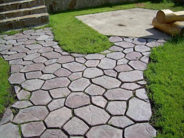 Toutes les tuiles du même type sont de la même taille, car elles sont coulées dans des formes standard. Il est facile de travailler avec de la pierre artificielle, vous n'avez pas à sélectionner et combiner des pièces. Pour le pavage des chemins, des plaques d'une épaisseur de 2 cm ou plus conviennent.