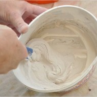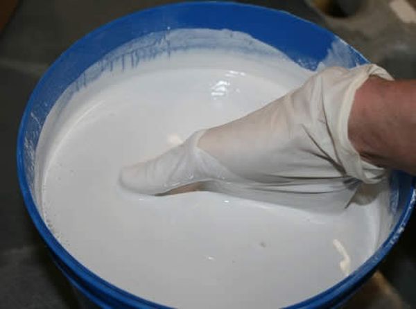 - Une quantité excessive de gypse est produite. Dans les cinq minutes, la solution durcira à un état de pavé, il ne sera pas possible de la redissoudre. Vous devez préparer le plâtre en plusieurs parties.