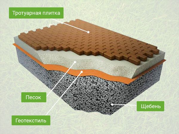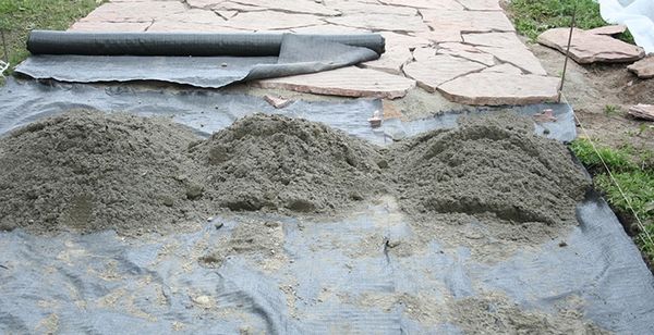 Le niveau optimal de pose des géotextiles est compris entre 35 et 40 cm, recouvert de sable de rivière à grain fin, de préférence lavé. Ensuite, tout cela est percuté ou simplement debout pendant 3 à 4 jours, puis l'allée du jardin elle-même est montée.