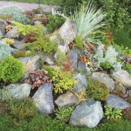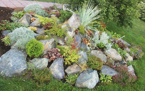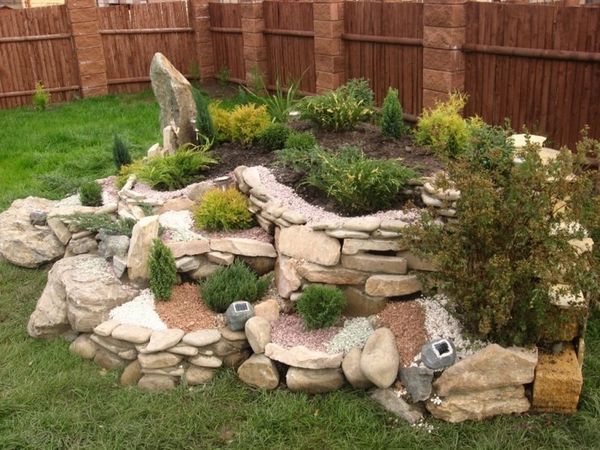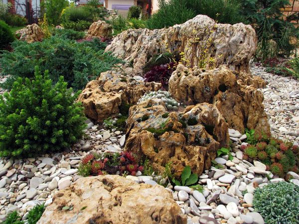 Une rocaille est une montagne faite de pierres rocheuses, décorée de plantes fleuries, herbacées ou résineuses. Il est fabriqué artificiellement, mais devrait avoir l'apparence la plus naturelle.