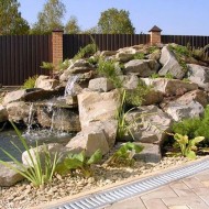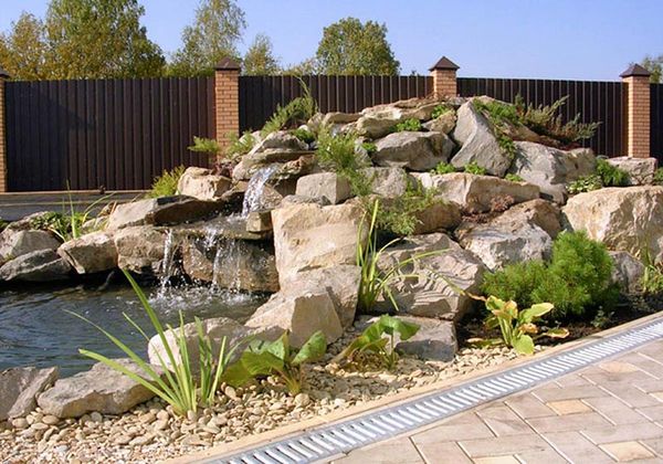 Pour créer de vos propres mains un élément exquis d'aménagement paysager, vous devez choisir un matériau en pierre de même format et de même structure. Il est permis d'utiliser à la fois des pavés et des dalles. Le grès, le schiste, le tuf et le calcaire absorbent bien l'eau, de sorte que la rocaille sera durable et toujours en fleurs.